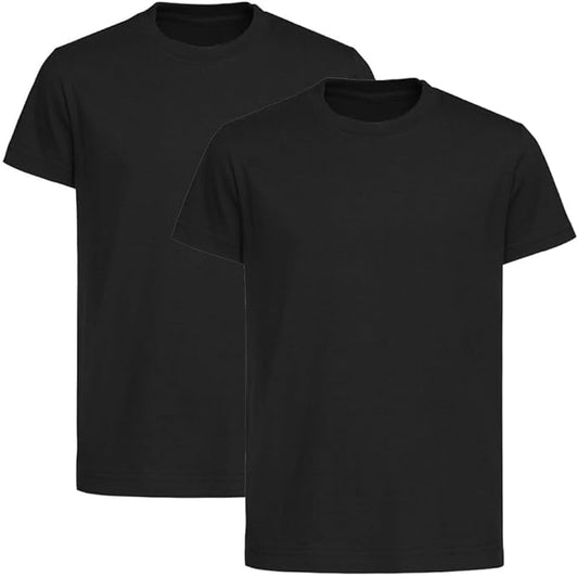 KHIM Kids Adult Pack of 2 Plain PE T Shirts Boys Girls Active Wear Crew Neck T-Shirt Lightweight & Breathable Fabric Ideal for PE and School Uniform