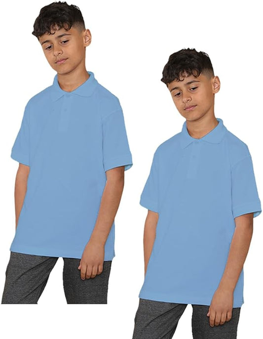 KHIM Unisex Polo Short Sleeve Polycotton Boys Girls School Uniform Plain Half Sleeve Shirts Sports Wear Indoor Outdoor Pack of 2 Age 2-14 years