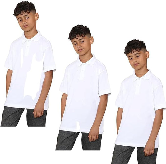 KHIM Unisex Polo Short Sleeve Polycotton Boys Girls School Uniform Plain Half Sleeve Shirts Sports Wear Indoor Outdoor Pack of 3 Age 2-14 years