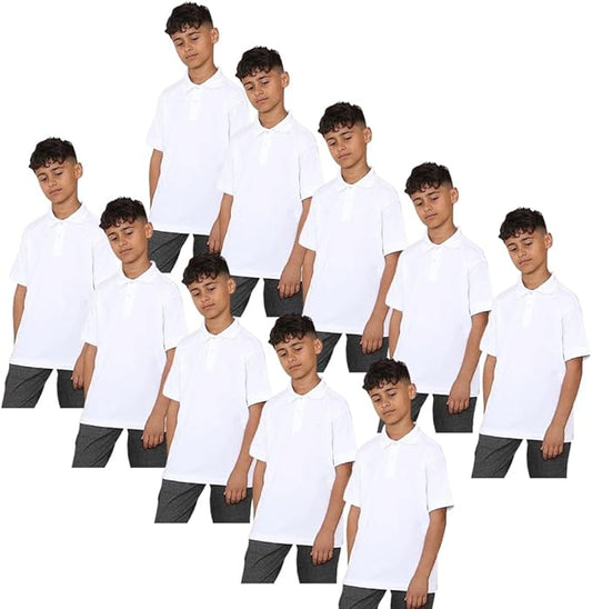 KHIM Unisex Polo Short Sleeve Polycotton Boys Girls School Uniform Plain Half Sleeve Shirts Sports Wear Indoor Outdoor Pack of 10 Age 2-14 years