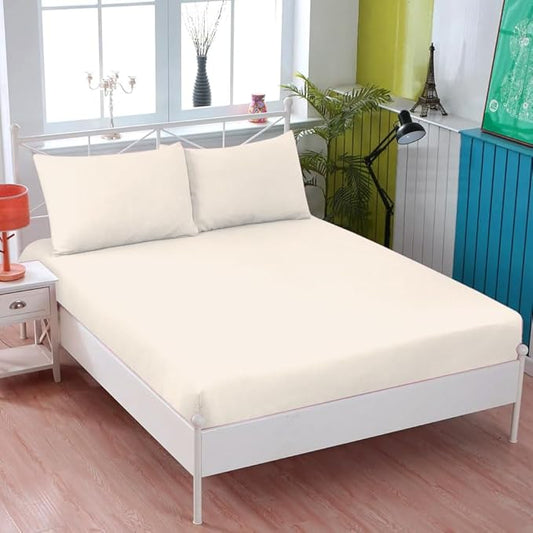 KHIM Luxury Deep Fitted Sheet 10”/25CM Breathable Poly Cotton Plain Soft Long-Lasting Bed Sheet Single Double King Super King, Pillowcase Pair Available in 8 different colors