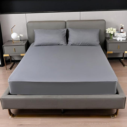 KHIM Luxury Deep Fitted Sheet 16”/40CM Breathable Poly Cotton Plain Soft Long-Lasting Bed Sheet Single Double King Super King, Pillowcase Pair Available in 8 different colors
