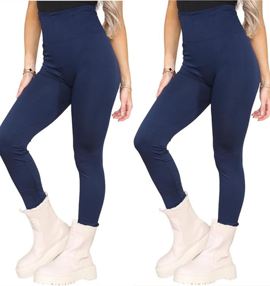 KHIM Pack of 1 &2 Ladies High Rise Thermal Fleece Lined Leggings Warm Comfortable Stretchy Ankle Length 8-22 UK